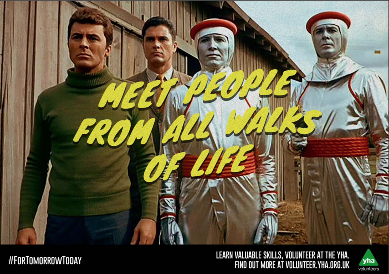 Idea: What if these skills were presented in short social clips as in the style of a 1960s adventure/sci-fi show? So in the way, the characters in those shows would refer to their time in intelligence or ‘During the war,’ each short clip would showcase a skill learned during time volunteering at the YHA as a way to solve whatever problem the characters were in.